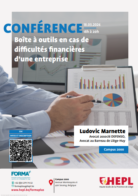 La HEPL et le Centre FORMA+ vous proposent une conférence : Boîte à outils en cas de difficultés financières d'une entreprise.