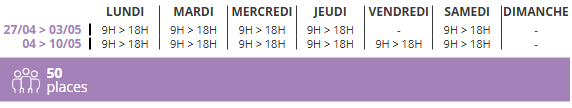 Lundi 27 avril - Dimanche 10 mai 2026