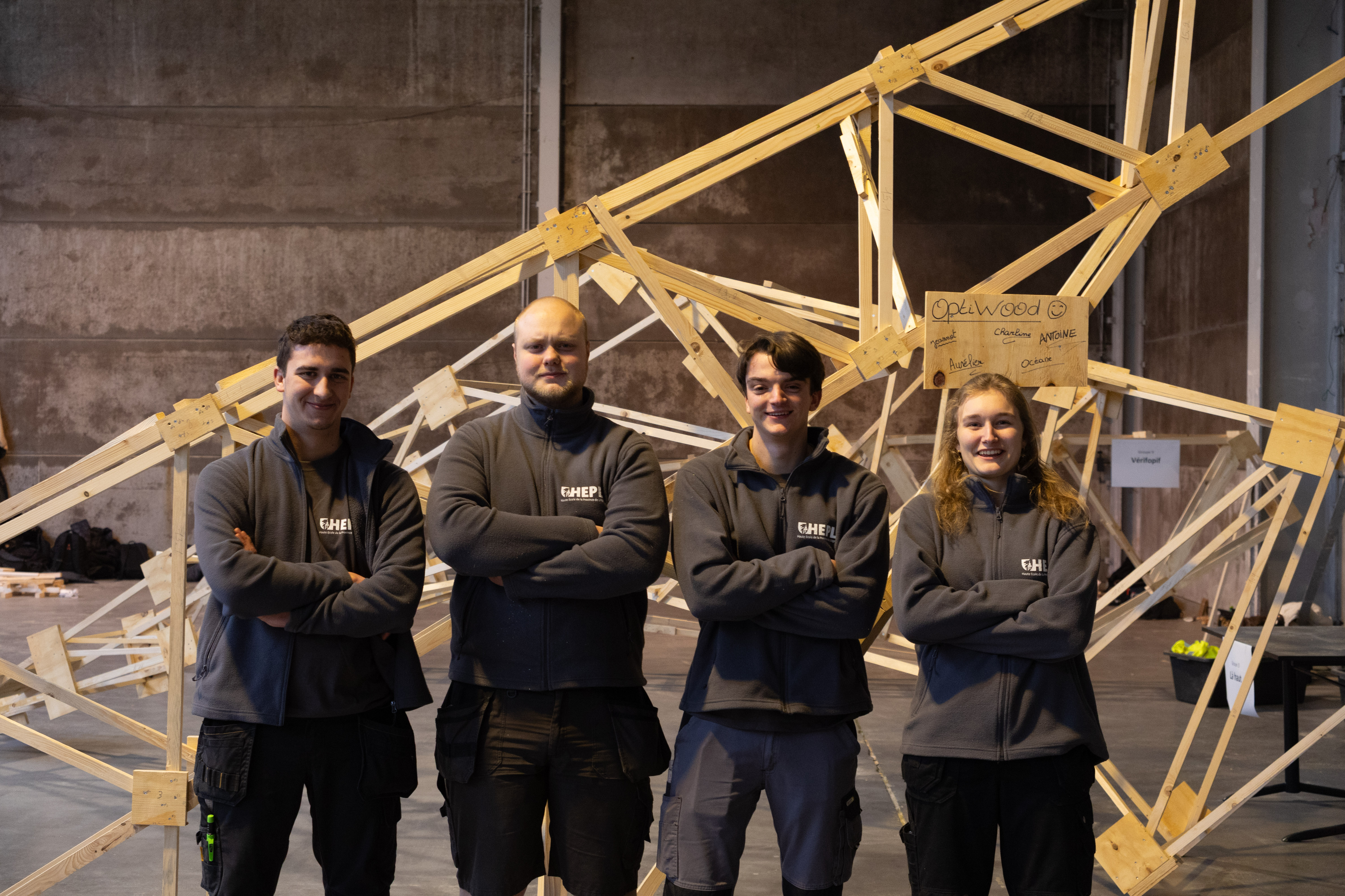 Encadrés par Marie-Andrée Motte et Pierrick Van den Brule, enseignants à la HEPL, ils développent progressivement leur structure. À partir d’une idée initiale, ils réalisent les plans numériques, vérifient le dimensionnement et optimisent les choix techniques afin de proposer une solution à la fois performante et réaliste. Ce travail préparatoire conditionne la réussite de la phase de construction et permet aux étudiants de mesurer concrètement l’impact de leurs décisions.