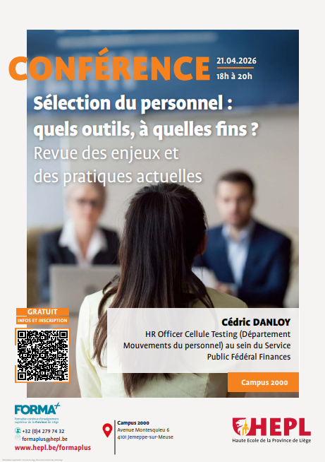 La HEPL et le Centre FORMA+ vous proposent une conférence : Sélection du personnel : quels outils à quelles fins. Revue des enjeux et des pratiques actuelles.