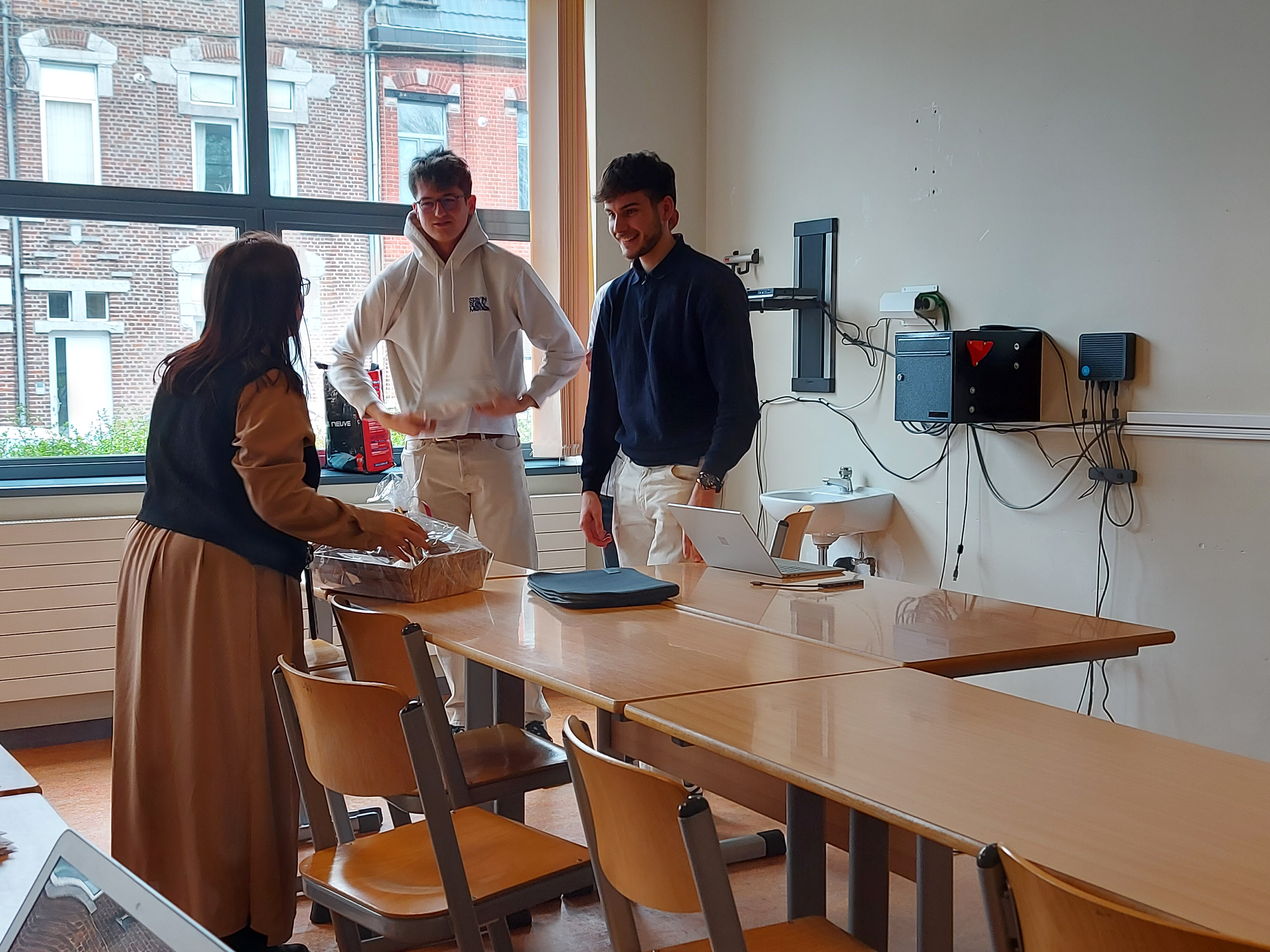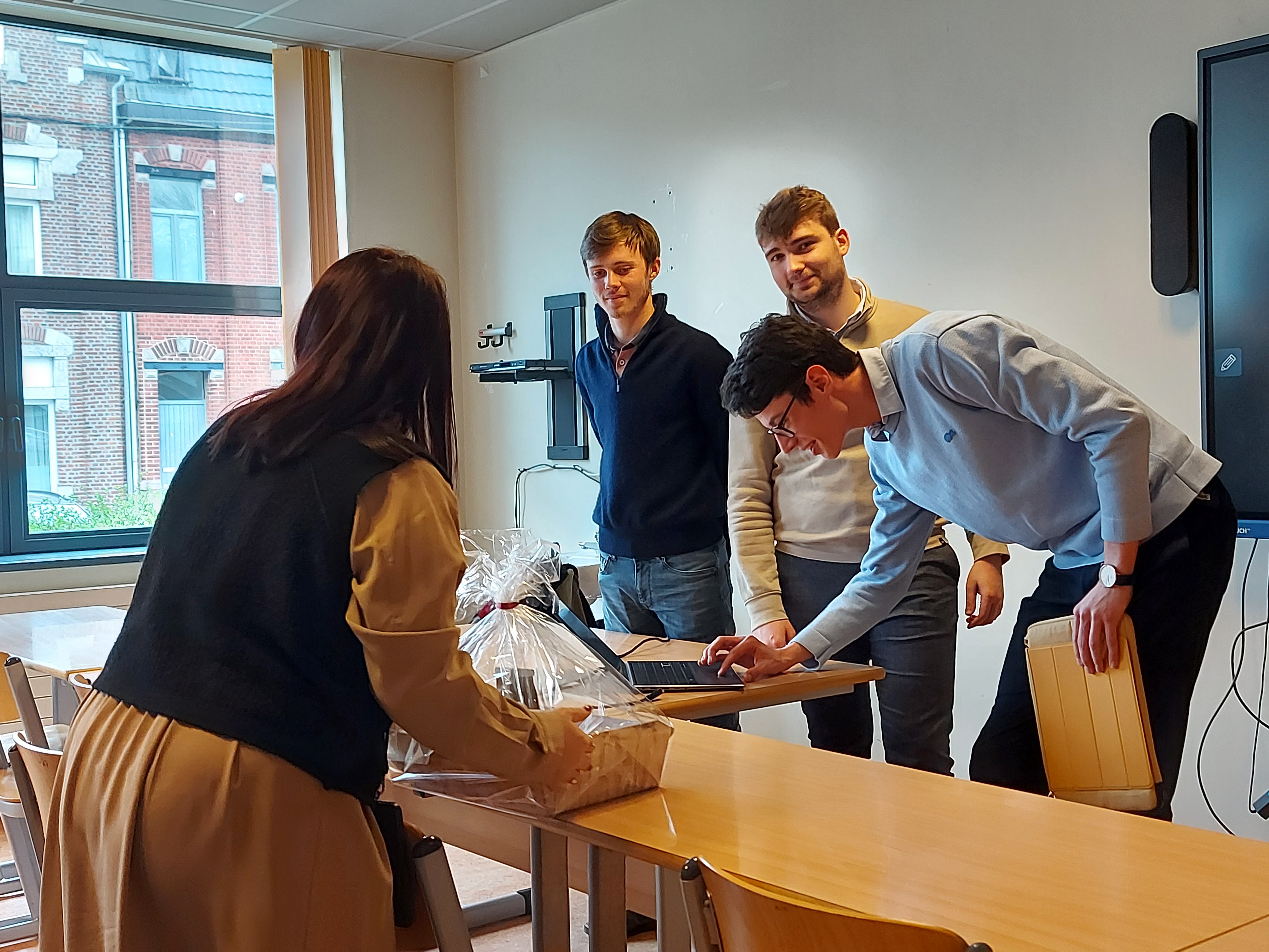 Les étudiants ont présenté leurs idées à Cassandra Doupagne, qui était accompagnée de son collaborateur Dorian Andrianne, alumni du Bachelier en e-business de la HEPL, engagé à la suite de son stage dans l’entreprise. Dorian a également accompagné les étudiants, en les guidant notamment sur les problématiques de la vente en ligne.