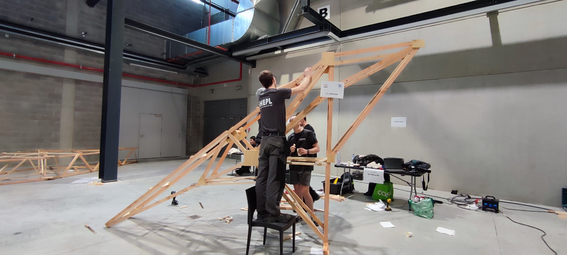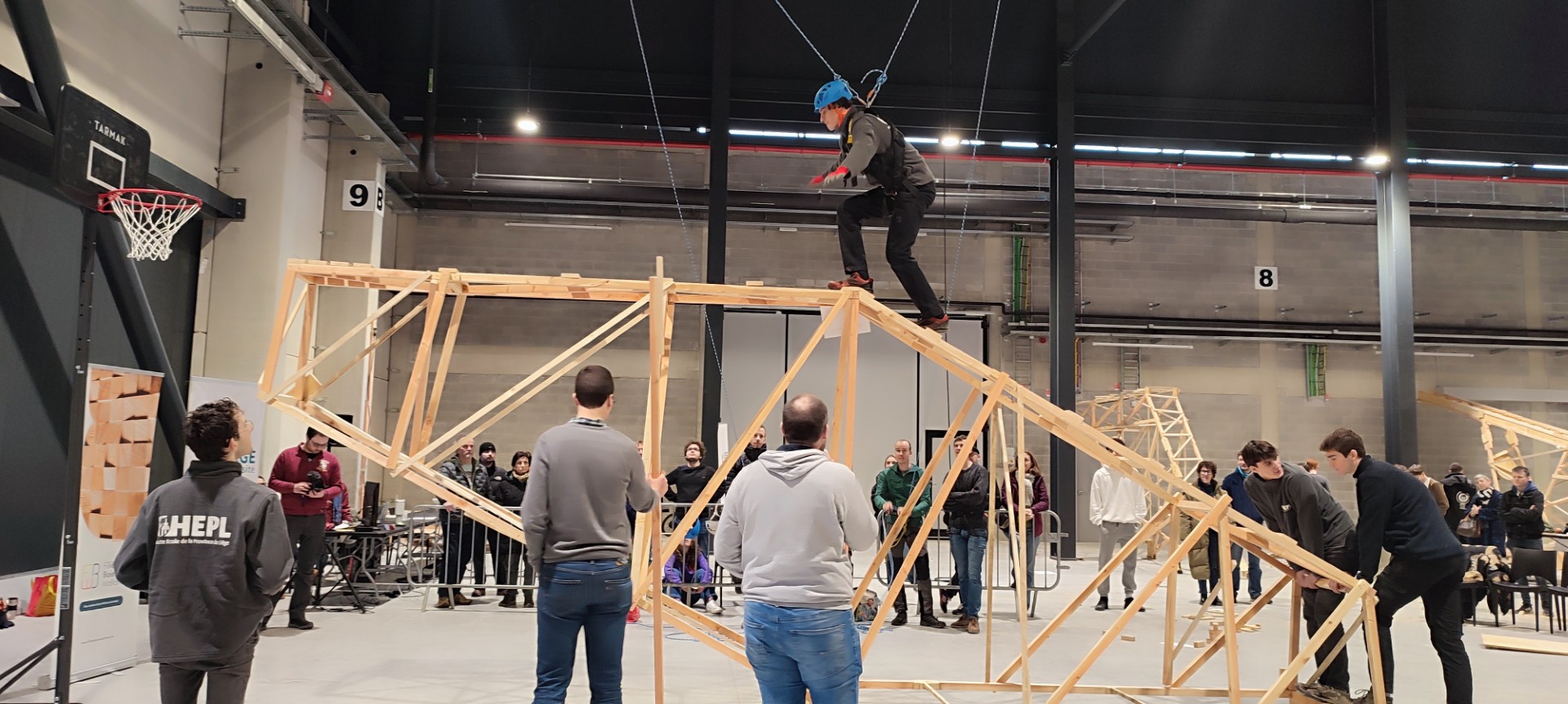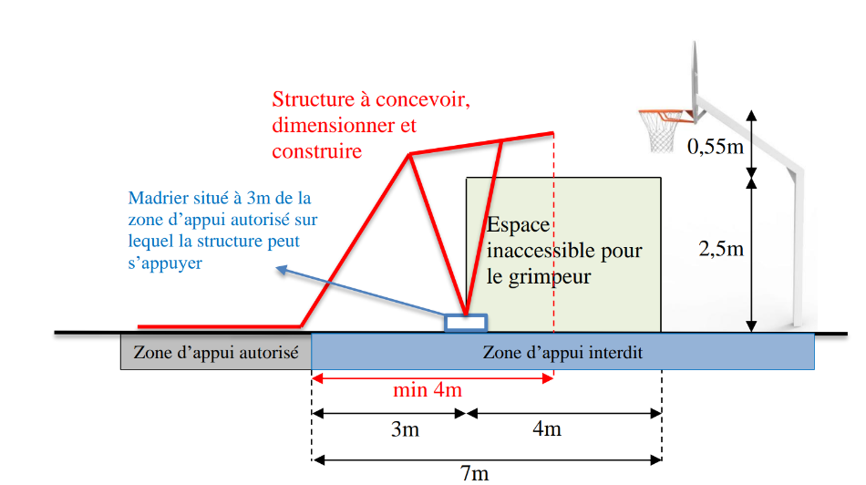 Les futurs ingénieurs ont relevé un défi aussi ambitieux que technique : concevoir et construire une structure en bois permettant de lancer une balle dans un panier de basket situé à 3,05 m de hauteur et 7 m d’une zone d’appui... le tout avec un budget minimal et sans pénétrer dans une zone interdite !