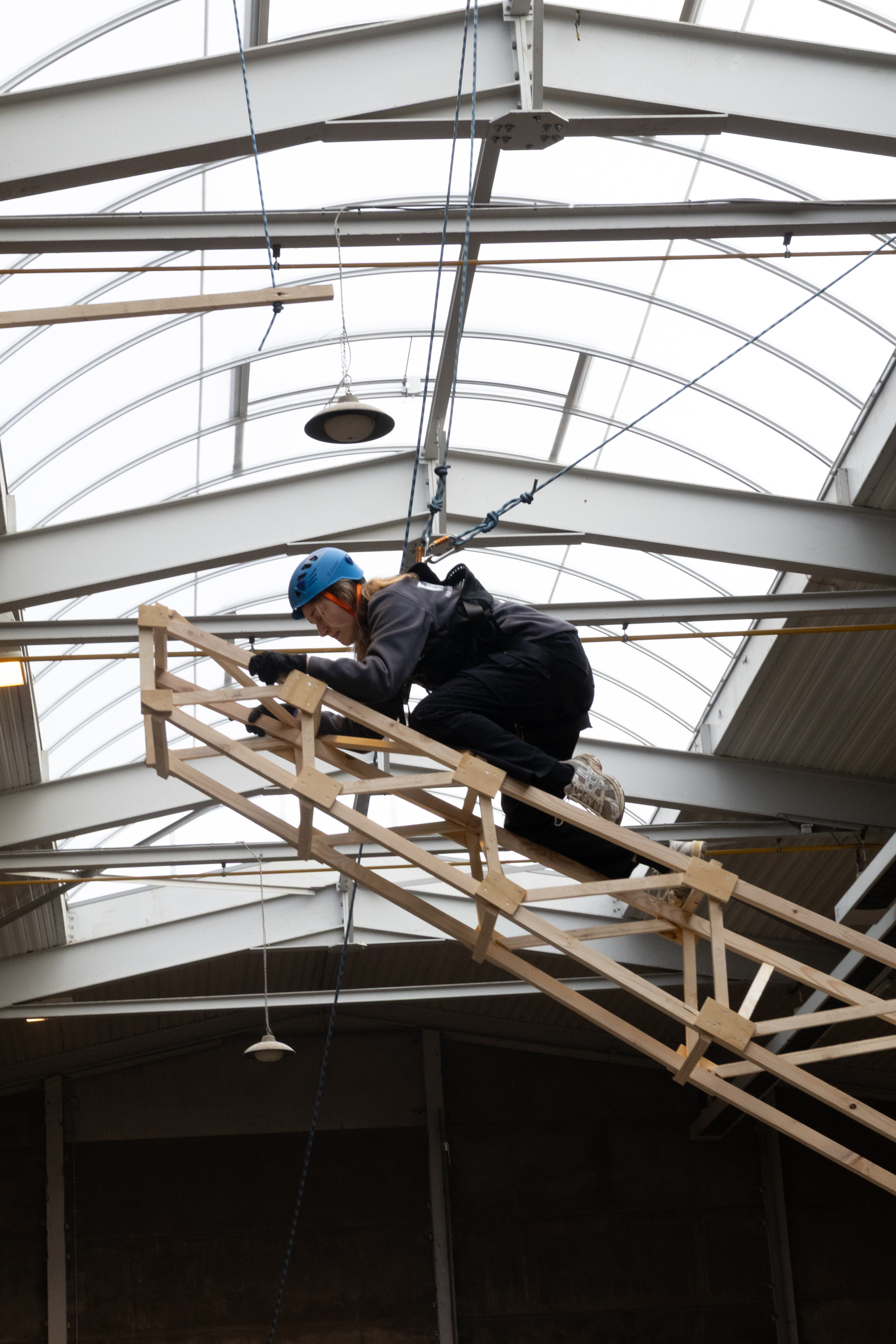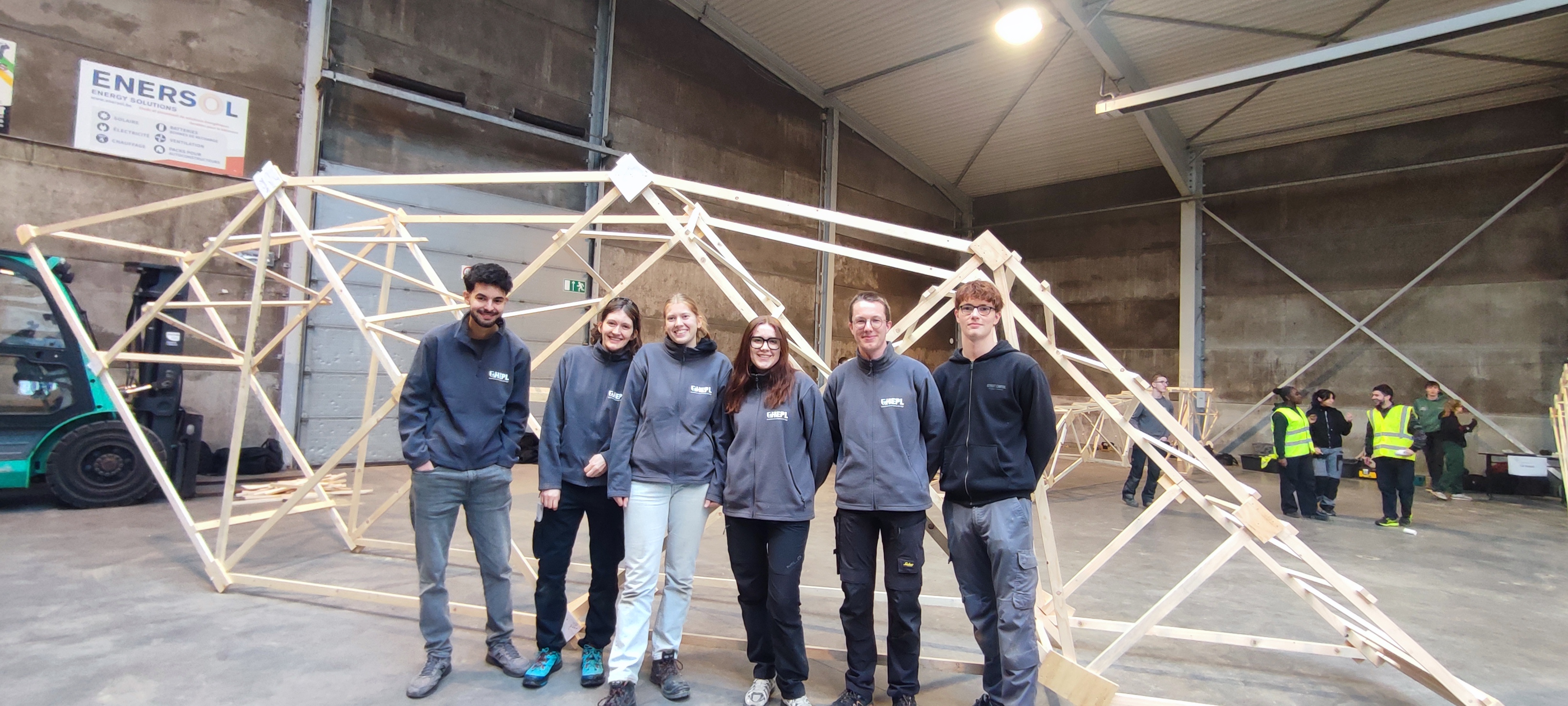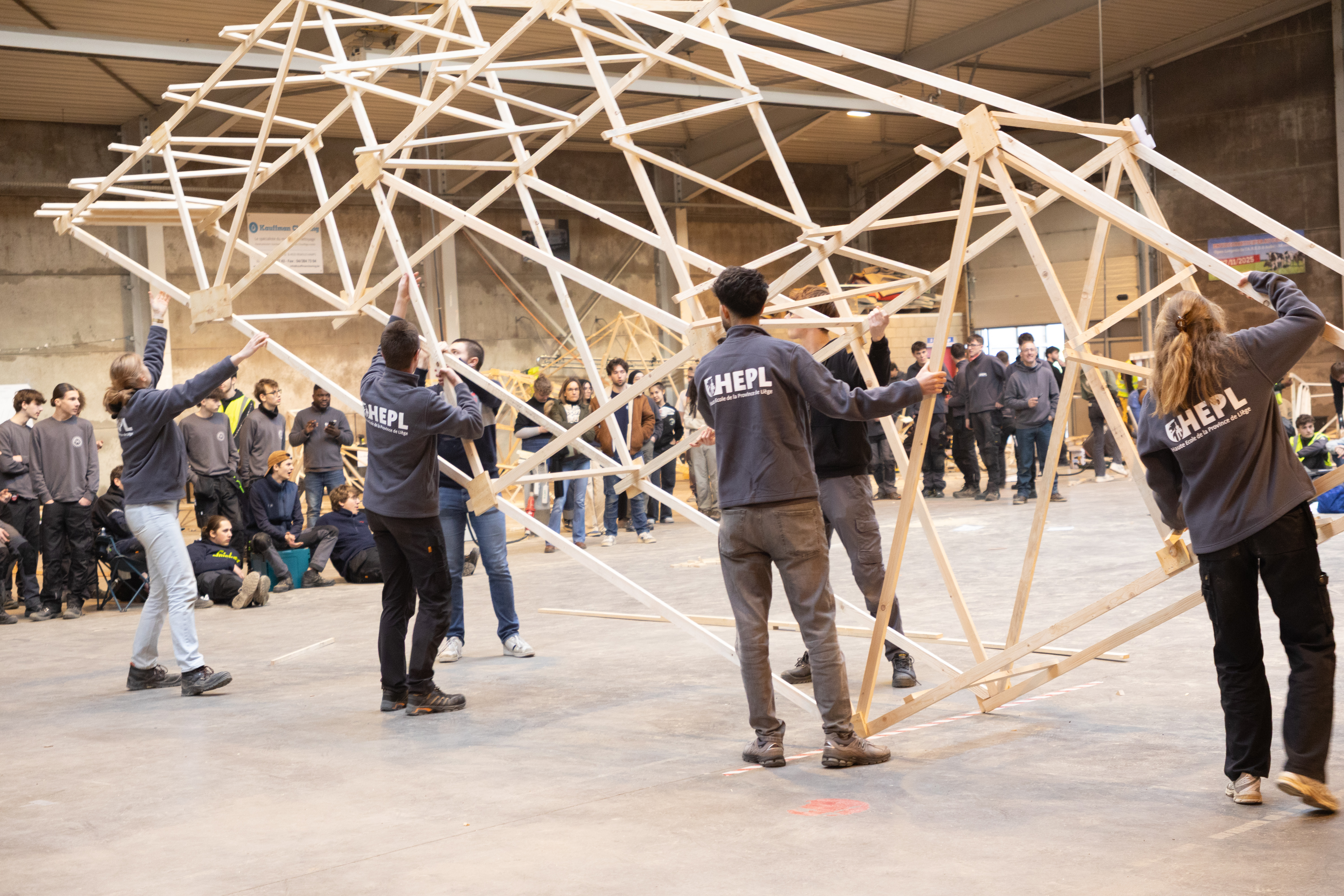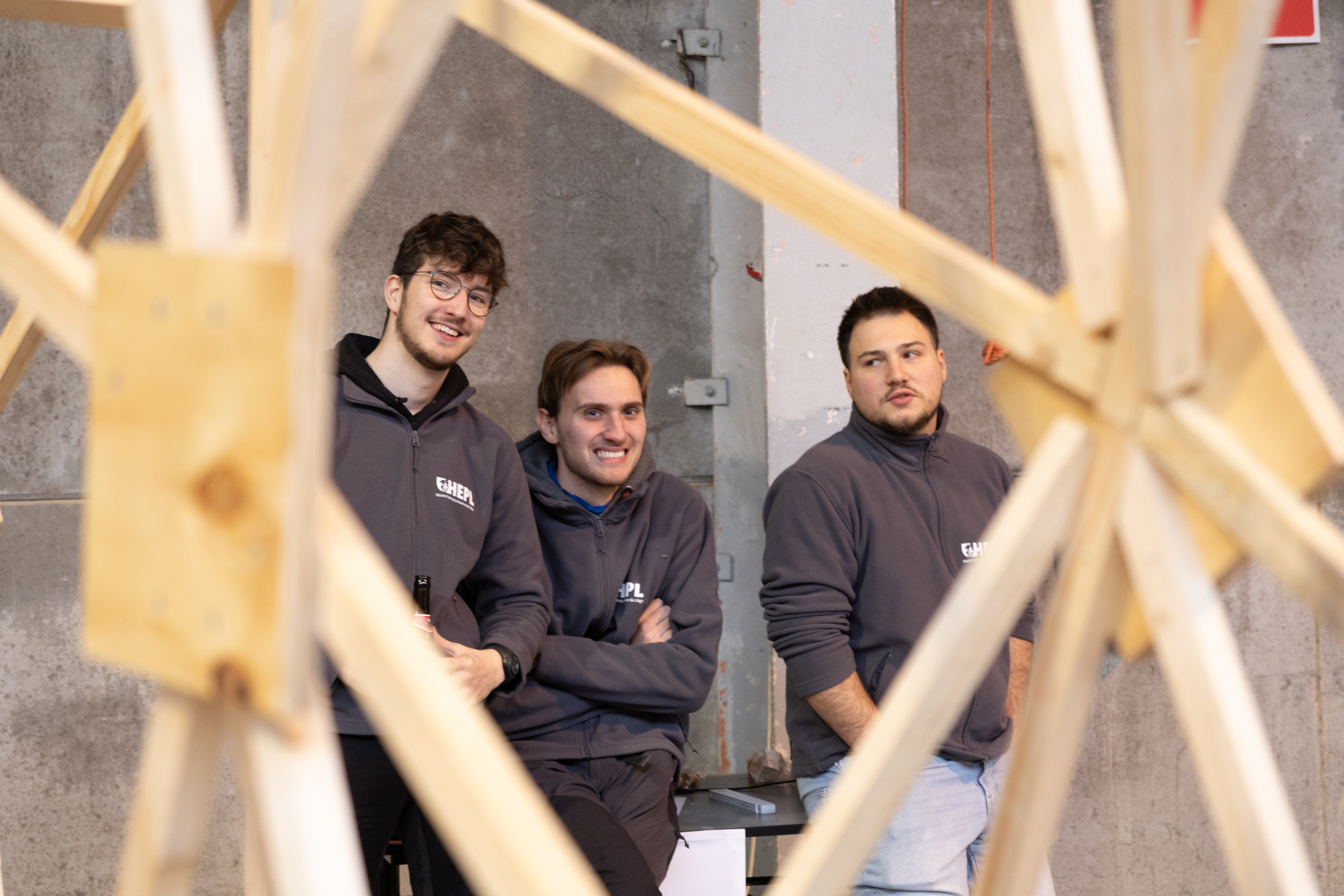 Encadrés par Marie-Andrée Motte et Pierrick Van den Brule, enseignants à la HEPL, ils développent progressivement leur structure. À partir d’une idée initiale, ils réalisent les plans numériques, vérifient le dimensionnement et optimisent les choix techniques afin de proposer une solution à la fois performante et réaliste. Ce travail préparatoire conditionne la réussite de la phase de construction et permet aux étudiants de mesurer concrètement l’impact de leurs décisions.