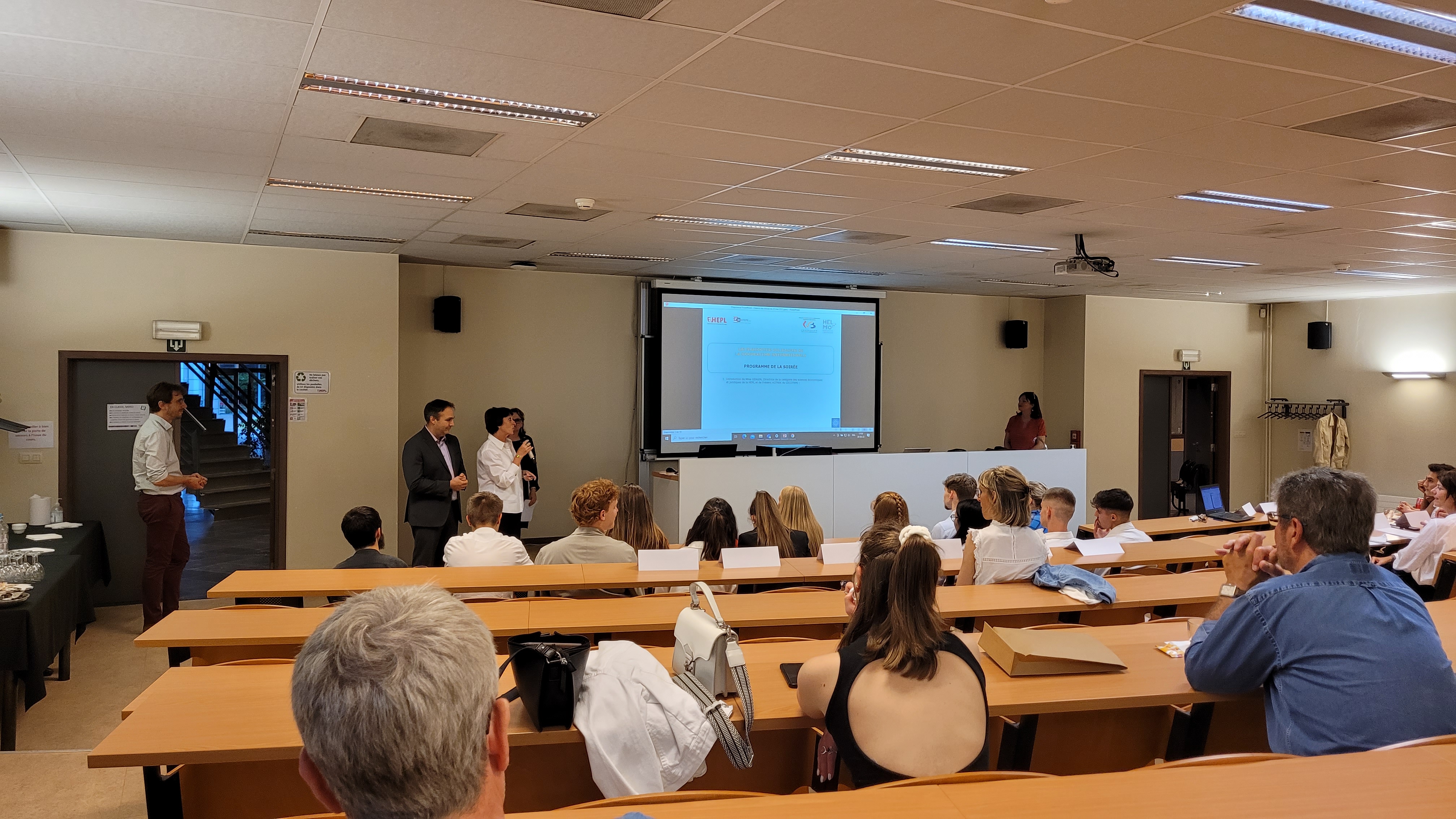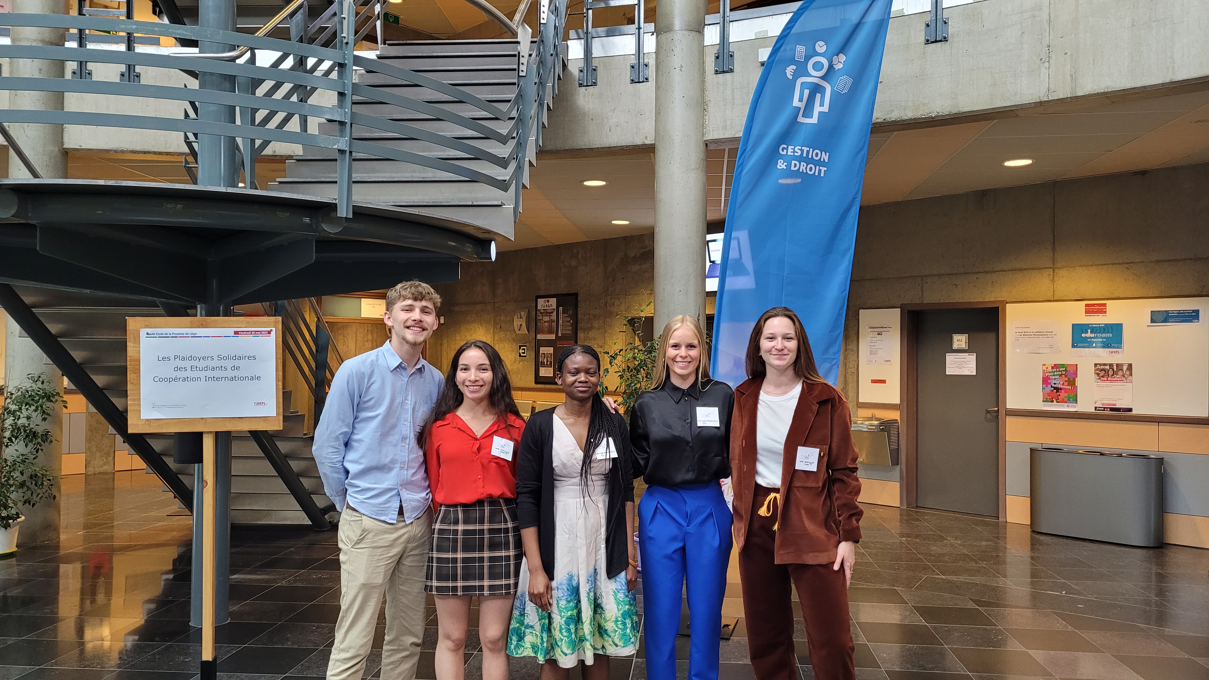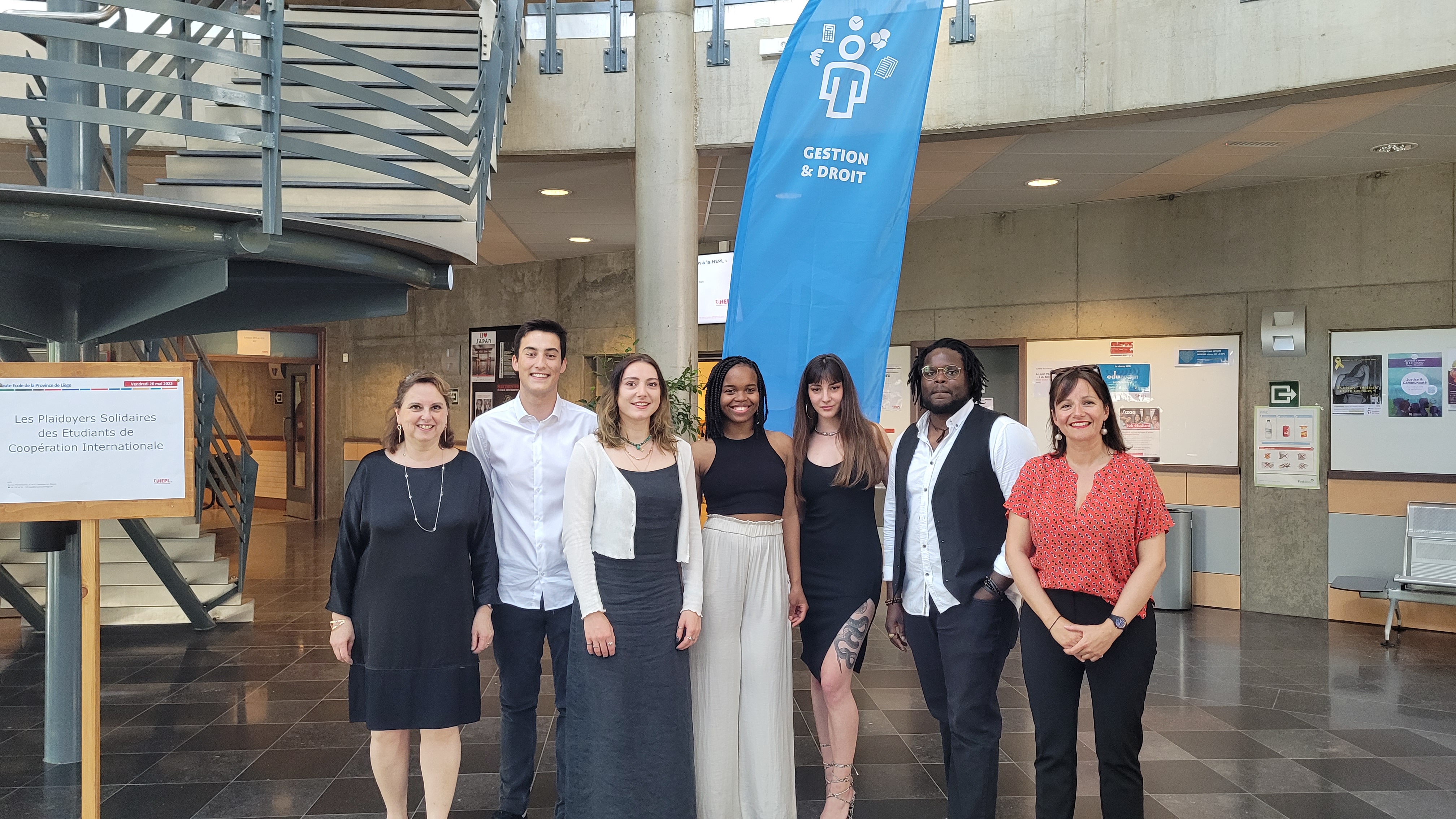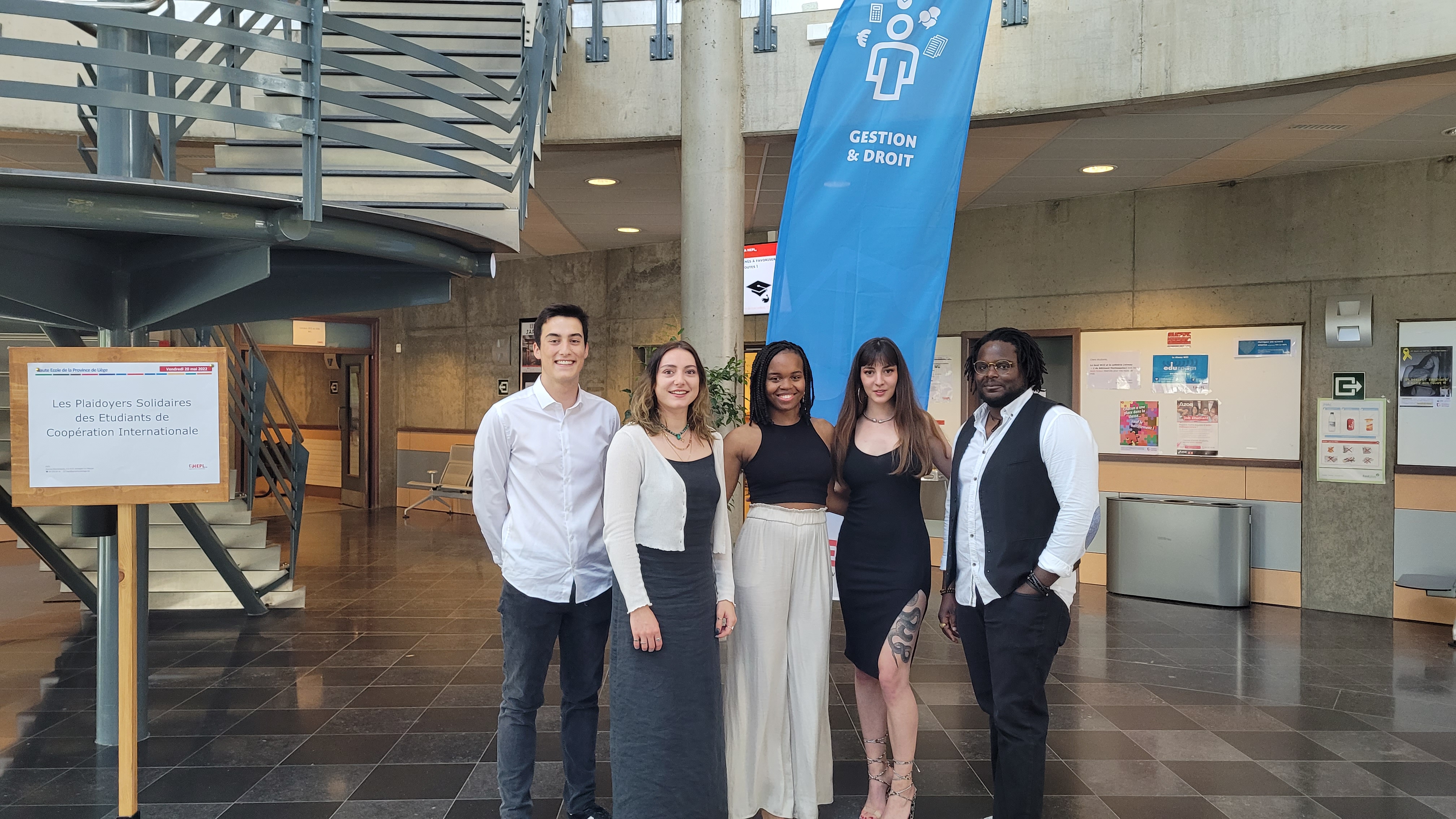 Fin mai, un jury d’experts s’est réuni au campus 2000 de la HEPL pour départager les équipes porteuses des projets-plaidoyers. Composé de Messieurs Plumat et Sprimont, représentants de Wallonie-Bruxelles International (WBI), M. Piron, de chez Etopia, ainsi de Mesdames Damuseau et Schoonbroodt, maîtres-assistants, ce jury a désigné deux équipes à la première place : V-notes et Takeaway show !